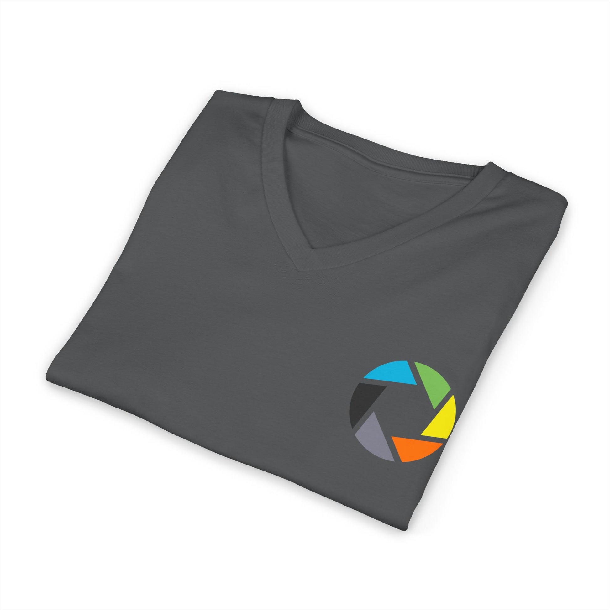 Lightweight and quietly confident. This V-neck tee sits close to the body without feeling tight, offering a clean silhouette that moves easily from morning shoots to casual nights out. The small, colorful aperture emblem at the chest adds a modern, creative touch — subtle enough to stay understated, bright enough to show a maker’s eye.